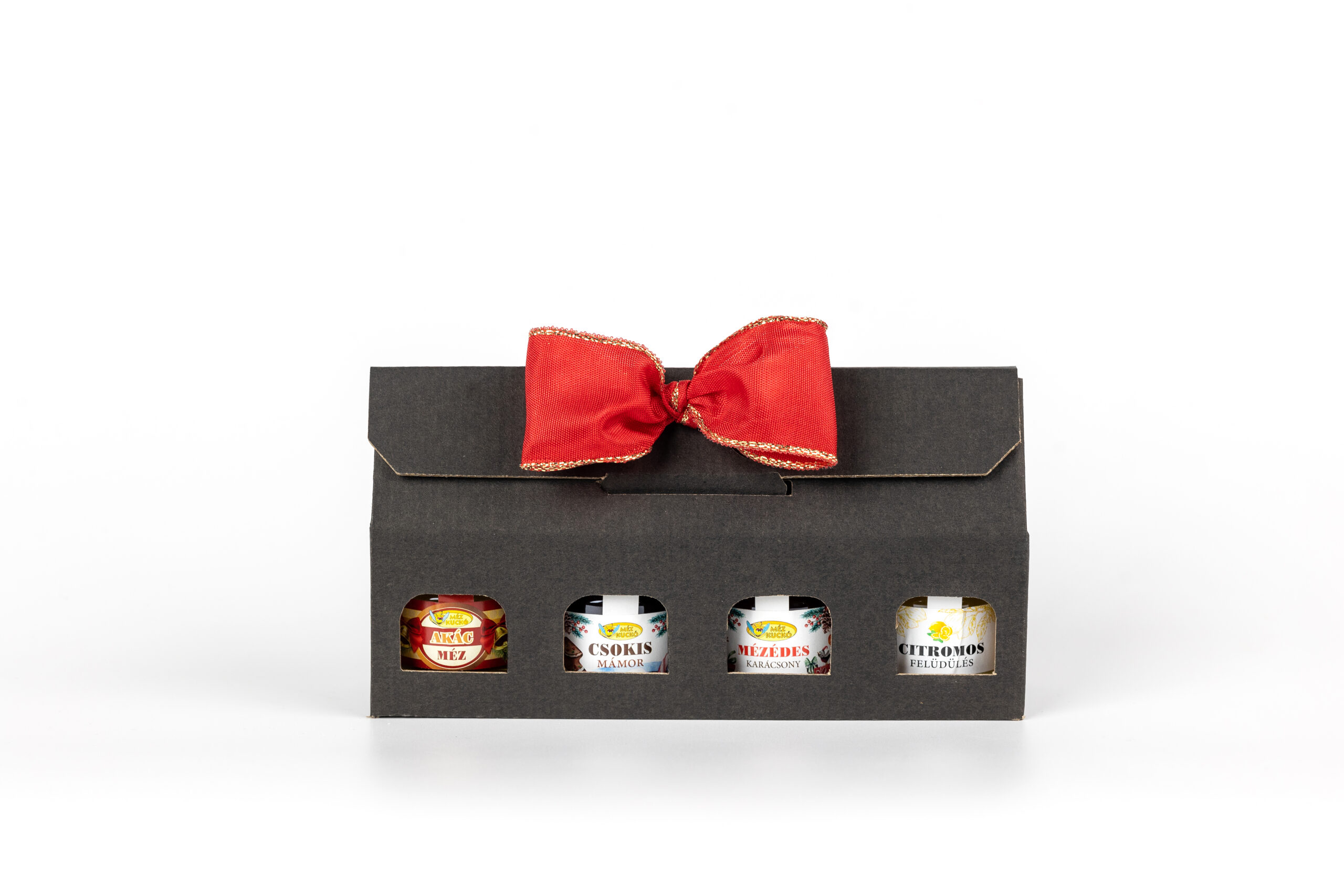 Karácsonyi fekete kartondoboz 4×50g mézzel mennyiség